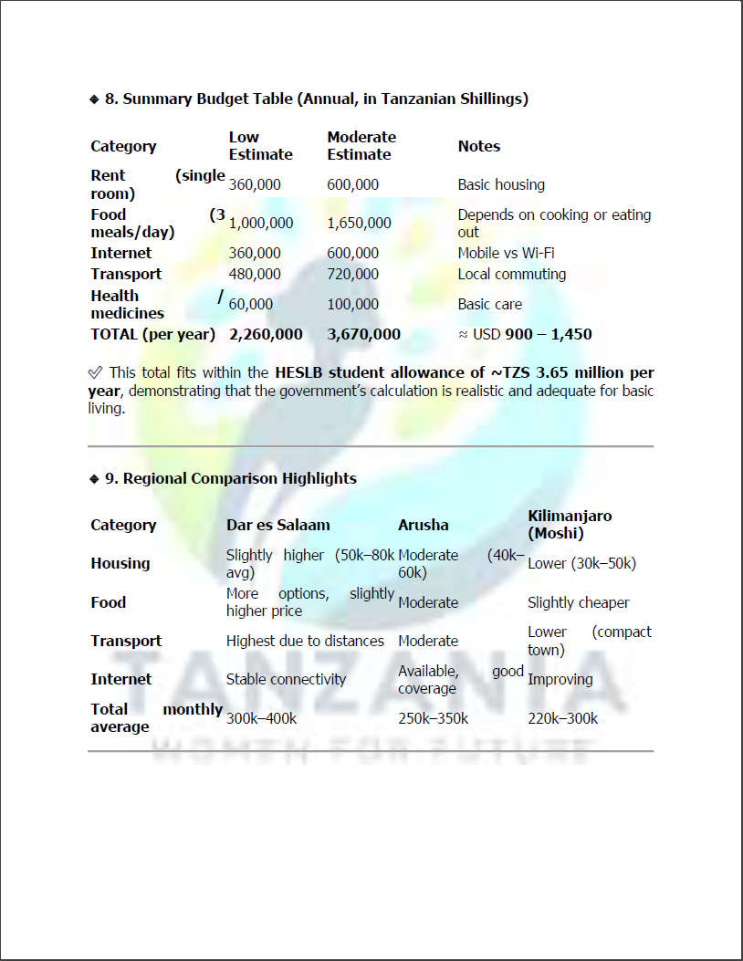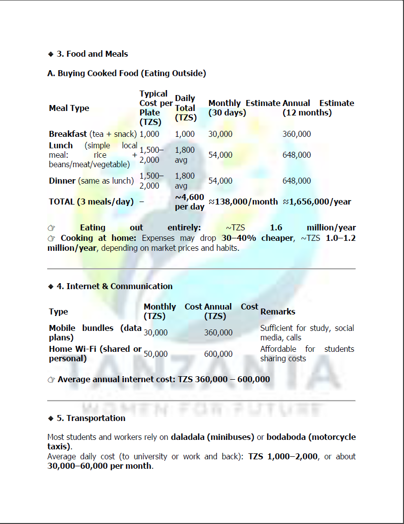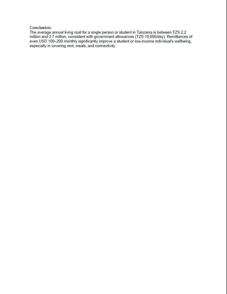 | Prix d’une année en université (ici Tumaini université à Makumira). Université privée. Mais les prix peuvent être très différents selon le standing de l’université. Il faut rajouter beaucoup de frais annexes : les livres, l’assurance médicale (20 €), des frais si des stages sont à effectuer, le matériel scolaire, …, qui ne sont pas inclus dans le coût ci-contre. | ~ 650 € par an |